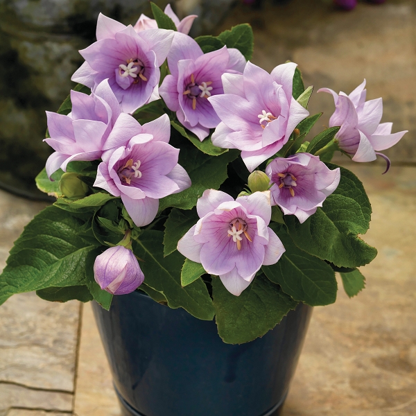 Платикодон грандифлора Астра ( Platycodon grandifloras Astra ) Многолетнее травянистое, крупноцветковое растение. Самый лучший карликовый платикодон среди низкорослых. Растение выровненное, компактное с прекрастным базальным ветвлением, в высоту до 20 см. Благодаря толстым лепесткам, цветение продолжительное – около 60 дней. Обладает полумахровыми очень крупными цветками в форме звездочки, в диаметре 5-7 см.Солнцелюбивое растение.Не переносит заболоченных участков. Рекомендации по выращиванию: Семена на рассаду высевают в марте месяце,слегка вдавливая в землю,не присыпая.Накрывают стеклом или пленкой, создавая оптимальную температуру для прорастания +20 - + 23 градуса, и ставят в освещенное место для прорастания. В фазе 2-ух настоящих листочков, рассаду пикируют и пересаживают в отдельные горшочки.Также возможна высадка семян прямо в отдельные горшочки, диаметром 12-13 см, по 3-5 семян,в горшок, для лучшей степени ветвления.
