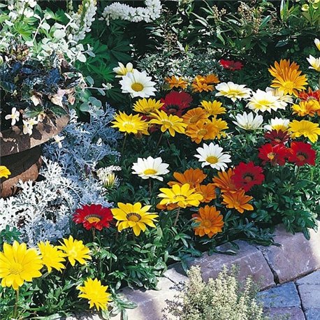 Газу можно отличить от других серий газаний благодаря очень большим цветам, достигающим 12-14 см в диаметре, прочным цветоносам и сильнорослому габитусу растения. Высота куста - 25-30 см, ширина - 25-30 см, срок выращивания - 12-14 недель. Цветы дольше остаются открытыми в пасмурную погоду по сравнению с другими сериями, радуя глаз чрезвычайно яркими цветами. На солнечных клумбах цветы газании создают незабываемые цветовые акценты. Растение хорошо переносит высокую температуру, поэтому обильно цветет даже в засуху. Идеально подходит для производства в горшках диаметром 12-14 см. Используется для оформления бордюров, вазонов, балконных ящиков.