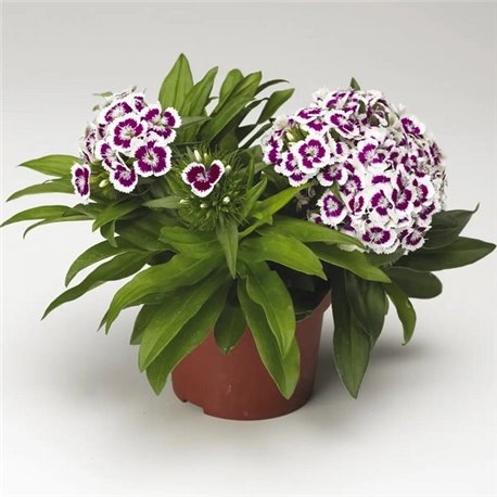 Компактный многолетник, который зацветает в год посева. Высота 20-30 см. Цветки бахромчатые, имеют приятный аромат. Растениям присущи все преимущества гибридов - хорошая сила роста, легкость выращивания, компактность, высокая однородность по габитуса и времени цветения всех расцветок. Зона зимостойкости от -35 °С до -29 °С. Используют для оформления рабаток, низкорослых клумб и декорирования краев газона. Период выращивания после высадки в горшок 10-12 недель.