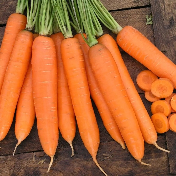 Семян в пакете 0,5 гр. Новый гибрид моркови нантского типа для хранения, переработки и реализации в свежем виде. Среднепоздние сроки созревания (120—130 дней). Корнеплоды 18—20 см, цилиндрические с хорошо выполненным кончиком, выровненные по форме и массе, интенсивно-оранжевые. Здоровая темно-зеленая ботва. Высокий товарный урожай. Хранится 6—8 месяцев. Высокое содержание каротина. Очень маленькая сердцевина, по цвету неотличимая от остальной мякоти. Рекомендована для всех типов почв.
