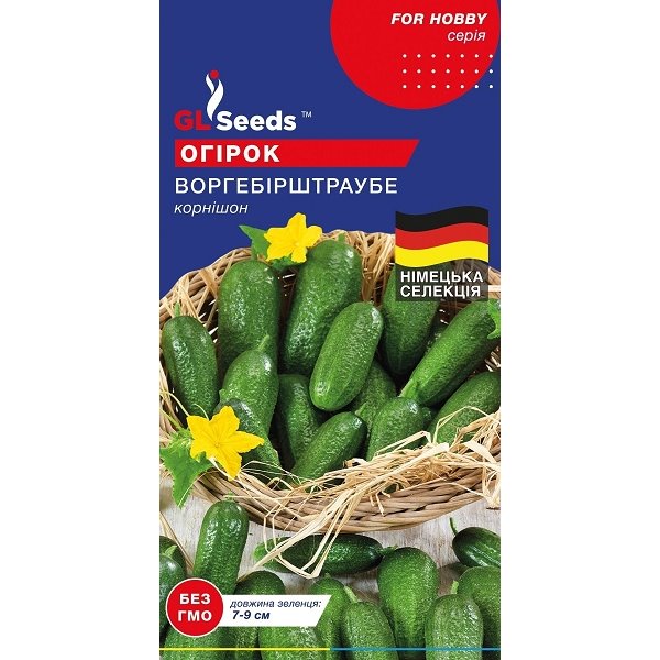 Семян в пакете 0,5 гр. Ранній (40-45 днів) кущовий огірок-корнішон німецької селекціЇ. Міцна компактна рослина. Зеленці завдовжки 7-9 см масою 80-90 г, видовжено-циліндричної форми, темно-зелені та дрібнобугорчасті. Часте розташування горбків, невелика насіннєва камера та хрумка м'якоть забезпечує відмінні засолювальні якості.