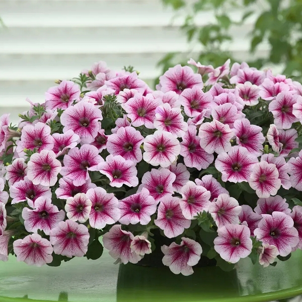 Петуния ампельная Опера Суприм F1 (Petunia Hybrida Opera Supreme F1). Пышные каскады ярких цветов. Серия идеально подходит для создания вертикальных и горизонтальных цветочных композиций. Прекрасный выбор для вазонов, подвесных кашпо, балконов. В открытом грунте образует сплошной ковер. Особенностью данного гибрида является раннее цветение, несмотря на длину светового дня. Характеризуется стойкостью к неблагоприятным погодным условиям. Куст хорошо ветвящийся высотой 15-20 см, в диаметре достигает 80-100 см. Цветы имеют привлекательный блеск и обильно укрывают растение по всей длине побегов.