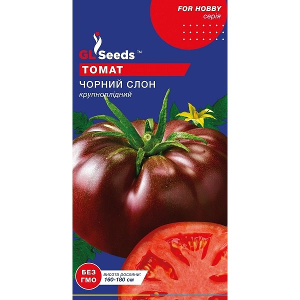 Семян в пакете 0,1 гр. Середньостиглий (115-120 днів), чорноплідний сорт індетермінантного типу, з великим листям картопляного типу. Плоди плоско-округлі, слаборебристі, масою – 200 - 300 г. М'якуш соковитий, кисло-солодкий, червоного кольору. Відзначається високий вміст мікро- та макроелементів, фітонцидів та антиоксидантів. Найкраще вживати плоди у свіжому вигляді відразу після збирання.