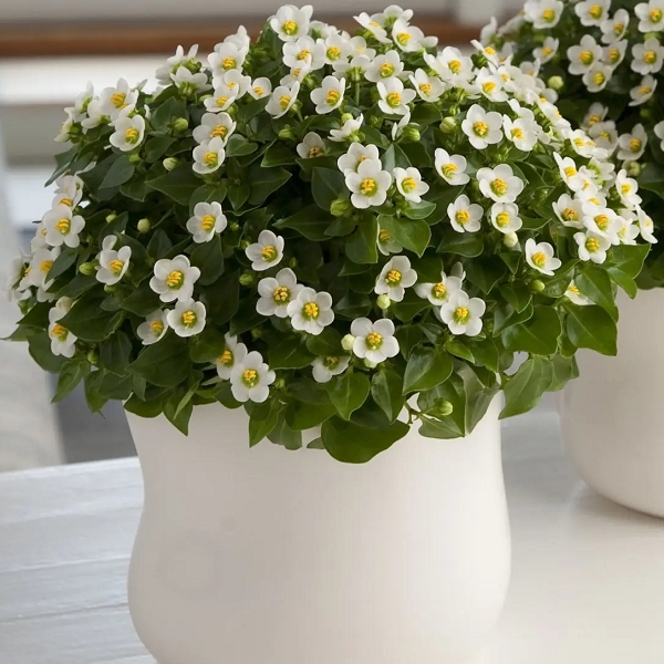 Екзакум Принцесса (Exacum Princess). Ніжна кімнатна рослина з білими та синіми квіточками та приємним легким ароматом. Зацвітає через 5-7 місяців після висадки саджанців. Висівати насіння краще ранньою весною у торф'яні таблетки, щоб при пересадці не травмувати кореневу систему. Маленькі рослини потребують прищипування верхівки, щоб сформувати красивий кущик і рясне цвітіння. Ці квіти не люблять яскравого освітлення і пересихання ґрунту. Краще ростуть у напівтіні відкритих площадок чи підвіконь.