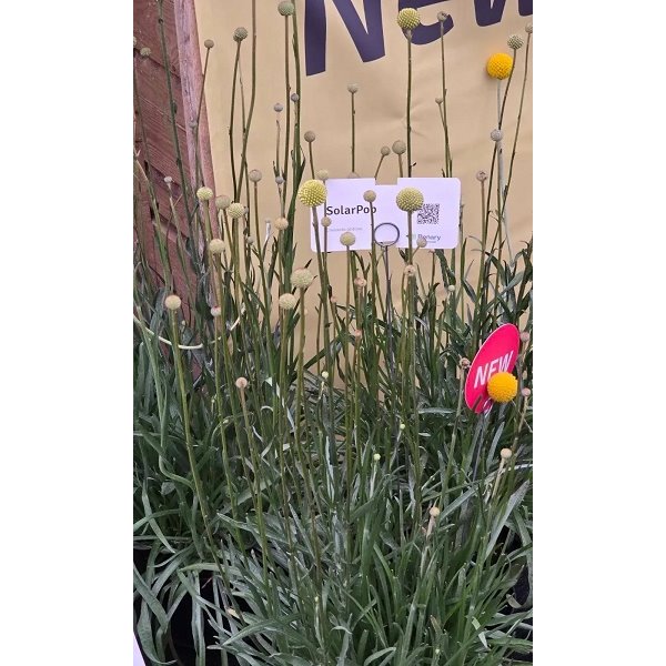 Краспедія кульовидна СоларПоп (Craspedia globosa SolarPop). Сорт з великими золотистими суцвіттями, який стане яскравою родзинкою квіткового букету. Підходить для горщиків, контейнерів та ландшафтного дизайну. Кущ висотою 60-70 см, з довгими прямими численними стеблами, листя зібране у прикореневу розетку. Рослина приваблює багатьох корисних комах. Вологолюбива, холодостійка та світлолюбна культура. На розсаду насіння висівають у лютому. Посів поверхневий. У відкритий ґрунт рослини висаджують, коли мине загроза заморозків, на відстані 25-30 см одна від одної. Краспедія - рослина короткого дня, тому навіть при ранньому посіві цвітіння розпочинається лише в другій половині серпня.