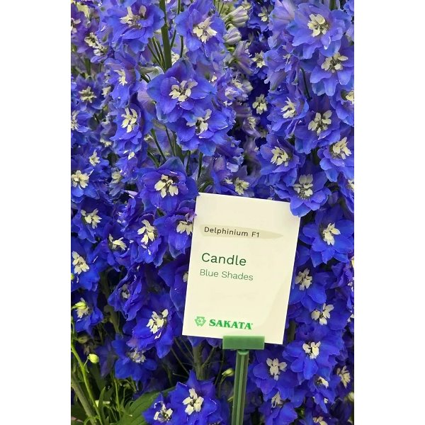Дельфініум високорослий Кендел F1 (Delphinium Elatum Candle F1). Дуже рання та вирівняна за періодом цвітіння серія. Стабільна та спеціально виведена для періодів короткого дня. Підходить для тунельного, тепличного вирощування та відкритого ґрунту. Ідеальна для зрізу та декорування клумб. Представлена в асортименті різних кольорів і суміші. Гібрид відрізняється високою схожістю насіння. Висота рослини від 120 до 150 см. Суцвіття великі, утворюють щільну китицю махрових квітів, зібраних навколо міцного стебла. Вегетаційний період вирощування 16-18 тижнів. При ранніх посівах навесні, до осені формуються потужні кущі, які зацвітуть на наступний рік. Найкраще і рясне цвітіння буде через пару років, коли рослина сформує стабільний міцний кущ. На одному місці рослина може рости до 6 років.