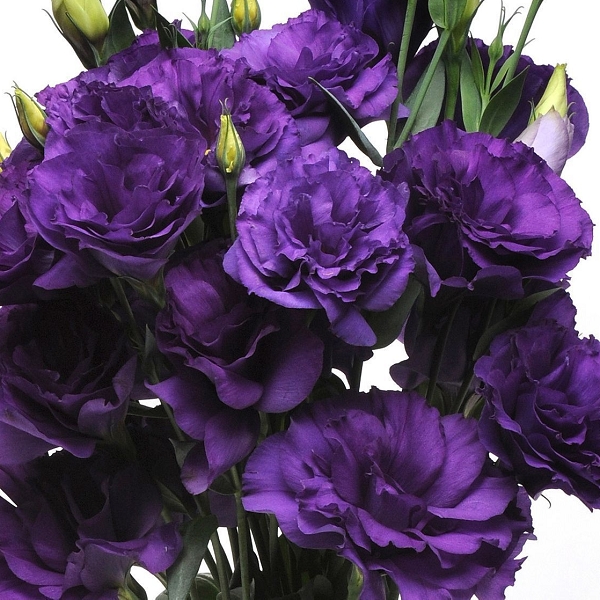 Еустома великоквіткова махрова Флаєр F1 (Eustoma grandiflorum Flare F1). Універсальна серія для комерційних продаж навесні, влітку і восени, яка ідеально підійде для вирощування високоякісного зрізу. Формує кущ висотою 90-110 см з міцними стеблами, на верхівках яких формуються великого розміру махрові квіти, які нагадує напіврозкриті бутони троянди. Особливістю та перевагою даної серії є рясне та тривале цвітіння, яскрава кольорова гама, чудова форма суцвіть, які зацвітають навіть в умовах короткого дня. Чудово підійде для створення квіткових композицій в саду. Період вирощування для ранньої продукції : розсада 8 - 10 тижнів , до реалізації готової продукції під час зимового вирощування -14 - 18 тижнів після пікіровки, влітку 10 -12 тижнів , весна - осінь -12 - 14 тижнів.