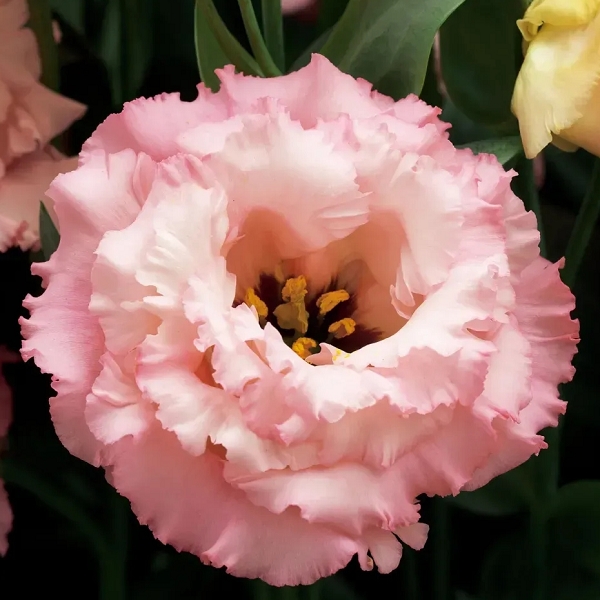 Еустома високоросла Кореллі F1 (Eustoma grandiflorum Corelli F1). Елегантний високорослий гібрид висотою 70-90 см. Суцвіття великі, густо-махрові, з гофрованими пелюстками. Серія пропонує широкий спектр кольорів. Рослина добре розгалужена, з міцними стеблами. Цвітіння рясне та тривале. Ідеально підходить для зрізу та тривалий час зберігає декоративність у вазі. Період вирощування: пізня осінь, весна та літо.