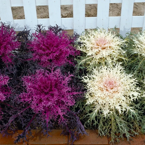 Капуста Пеакок F1 (Brassica Peacock F1). Дуже ефектна низькоросла серія з мереживним листям, що робить її схожою на велику квітку. Використовується для бордюрів та групових посадок. Кущ висотою 20-30 см, з міцними товстими стеблами, листя дрібнозубчасте. Рослини можуть витримувати помірні морози та заморозки, а також добре ростуть у вологих умовах, оскільки їхнє відкрите пір'ясте листя менше затримує воду, ніж у класичних видів, що робить його менш чутливим до грибкових захворювань. Ідеально підходить для комерційного вирощування та квітникарів, які шукають вражаюче доповнення до квіткових композицій у своєму саду.