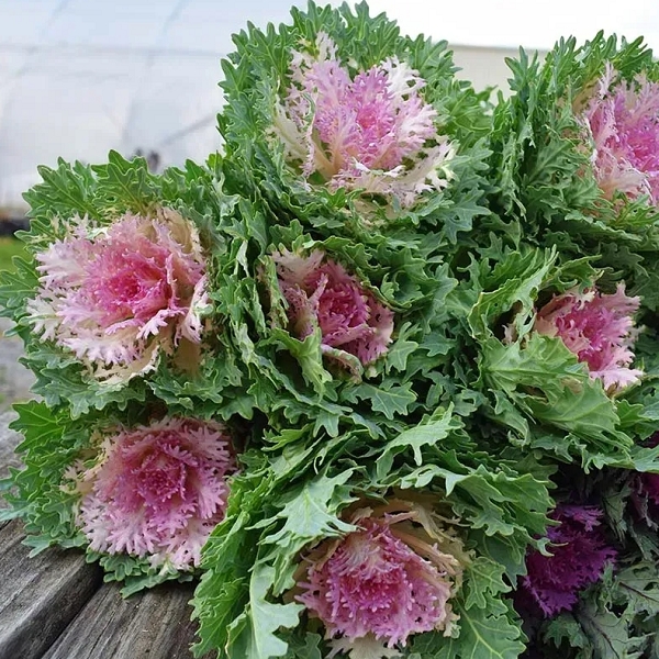 Капуста Крейн Фезе F1 (Brassica oleracea Crane Feather F1). Гібрид декоративної капусти в суміші кольорів з міцним стеблом та мереживним листям. Його незвичайна текстура надає сучасного шарму композиціям та букетам. Яскраві забарвлення рослин створюють кольорову картину, яка викликає захопливі погляди спостерігача. Висота до 90 см. Світлолюбива, холодостійка, вологолюбива культура. Віддає перевагу легким, добре дренованим, родючим ґрунтам. На розсаду насіння висівають у кінці березня - на початку квітня, безпосередньо на постійне місце у травні - червні. Догляд за декоративною капустою нескладний і передбачає регулярні поливи, підживлення та розпушування ґрунту при необхідності.