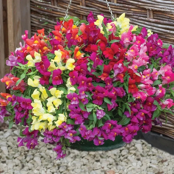 Антіррінум каскадний Кенді Шауер F1 (Antirrhinum majus pendula Candy Showers F1). Ідеальний варіант для вертикального озеленення. Рослина успішно використовується для підвісних кошиків, контейнерів, балконів, висадки в вази. Чудово розростається на клумбі, формуючи яскраві килими. Висота 15-20 см, ширина 25-30 см. Завдяки міцним та гнучким стеблам рослини добре транспортуються. Насичені кольори квітів дуже привабливі для роздрібної торгівлі у весняно-осінній періоди. Легко зацвітає в умовах короткого дня.