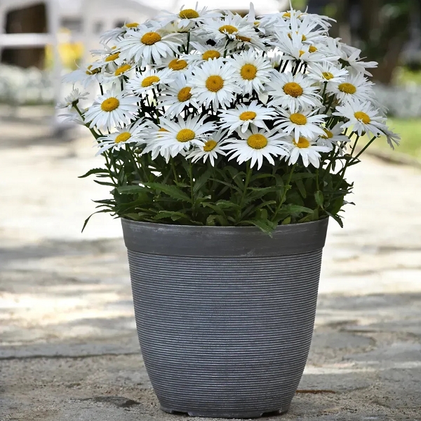 Ромашка Мадонна (Leucanthemum superbum Madonna). Великоквіткова компактна серія на міцних квітконосах. Даний вид ромашки при ранньому висіві на розсаду зацвітає в перший рік посіву, що є альтернативою вегетативному вирощуванню. Висота в горщику 20-25 см, у відкритому ґрунті до 30-40 см. Суцвіття-кошики білосніжного кольору з жовтою серединкою, діаметр 6-8 см. Характеризується чудовою міцністю та якістю листя. Рослини більш вирівняні за висотою, порівняно зі стандартними сортами, що зменшує затрати на відсортування. Вирощувати можна як горщикову культуру, так і для відкритого ґрунту. Ромашка не потребує складного догляду, практично не пошкоджується хворобами та шкідниками, добре росте і найголовніше – дуже красиво та тривало цвіте.