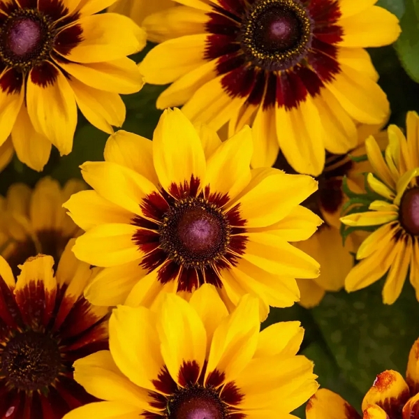 Невисока серія рудбекії, яка придасть яскравості та українського колориту Вашій клумбі. Квіти у вигляді невеликих соняхів мають жовті пелюстки та контрастну темно-коричневу серединку. Рудбекію можна висаджувати в контейнери та використовувати для створення букетів. Особливістю даної серії є дуже раннє, одночасне цвітіння рослин та стійкість до дощу. Стебла прямі, опушені, висотою до 50 см.